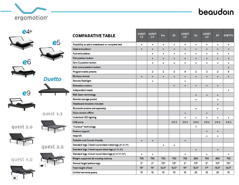 All of our adjustable beds are distribution products manufactured by Ergomotion.