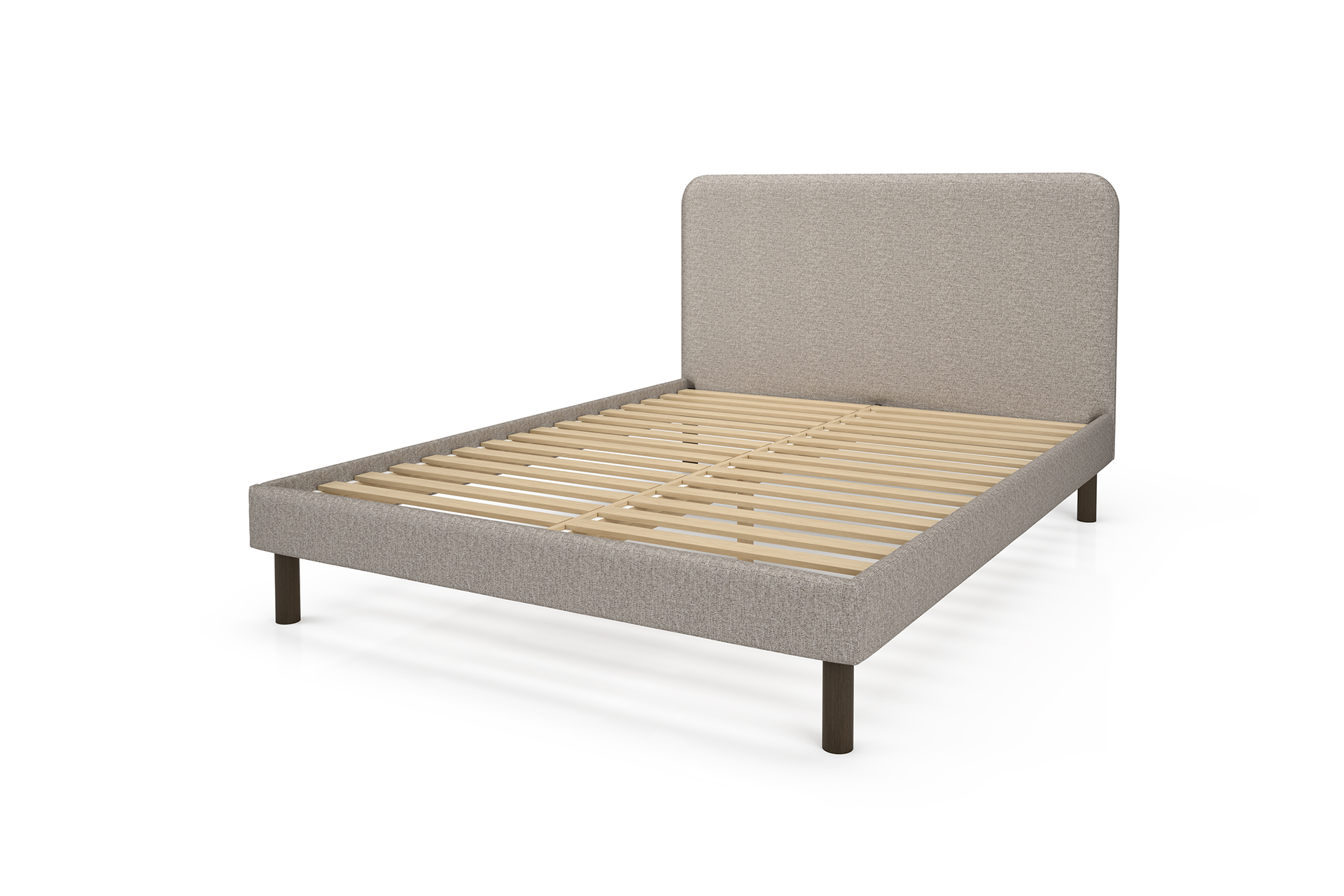 Le lit Luna se distingue par son allure simple et raffinée. Sa tête de lit arrondie et légèrement rembourrée lui confère un style à la fois doux et moderne. Soutenu par des pattes cylindriques en bois foncé, il s’intègre harmonieusement à tout décor contemporain.